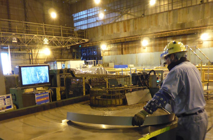 梱包ライン操作 ライン起動、梱包紙巻き付け、フープ結束等を操作及び監視しています。